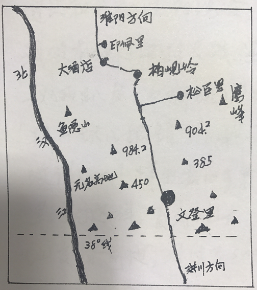 部隊到達大酒店二線陣地后,1951年10月7日早上,連長命令許敬禹和副連長前去人民軍某部炮陣地聯(lián)系接交事宜。