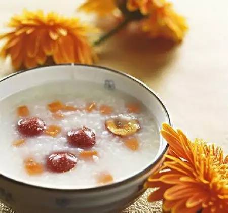 具有健脾補(bǔ)血、清肝明目之功效,長期食用可使面部膚色紅潤,消除皺紋,起到保健防病、駐顏美容的作用。粥可以美顏、調(diào)中氣、平肝、明目、解毒等。其中紅棗可以補(bǔ)氣養(yǎng)血;菊花有疏風(fēng)、清熱、明目、解毒等作用。紅棗和菊花合用可以令肌膚美艷、眼睛明亮、氣色絕佳。要堅(jiān)持服用,尤其事干燥的季節(jié)和干燥地區(qū)的女孩子,對膚色黯淡改善非常明顯。