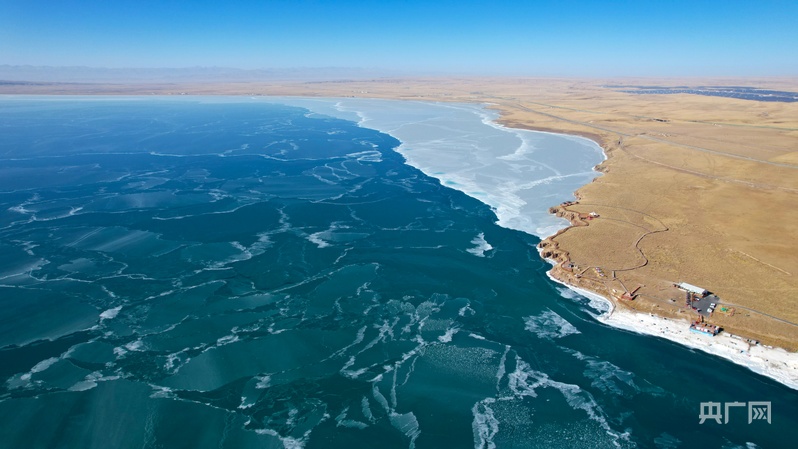正值數(shù)九寒天的時節(jié),青海湖正悄然完成季節(jié)更替。這片澄澈的高原湖泊化身巨大的“冰動藍寶石”。