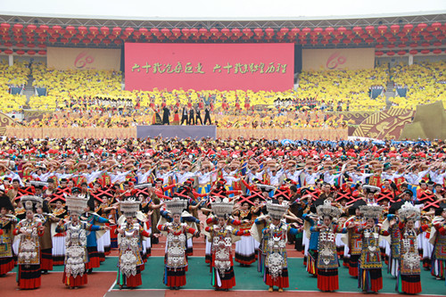 國(guó)家民委副主任丹珠昂奔代表中央部委祝賀團(tuán)首先致辭,他表示涼山彝族自治州60年的光輝歷程,是黨的民族政策巨大優(yōu)越性的集中體現(xiàn)。涼山的發(fā)展速度驚人,可以說(shuō)是經(jīng)濟(jì)大發(fā)展、民族大團(tuán)結(jié)、民生大改善。這是黨和政府歷來(lái)高度重視民族地區(qū)工作的結(jié)果,也是四川省委、省政府重視民族地區(qū)工作,著力狠抓民族地區(qū)經(jīng)濟(jì)發(fā)展的結(jié)果。