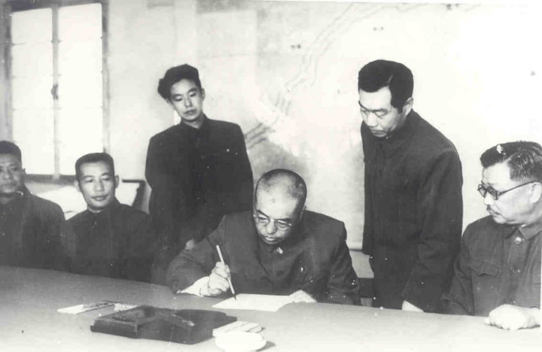 中國人民志愿軍司令員彭德懷在停戰(zhàn)書上簽字