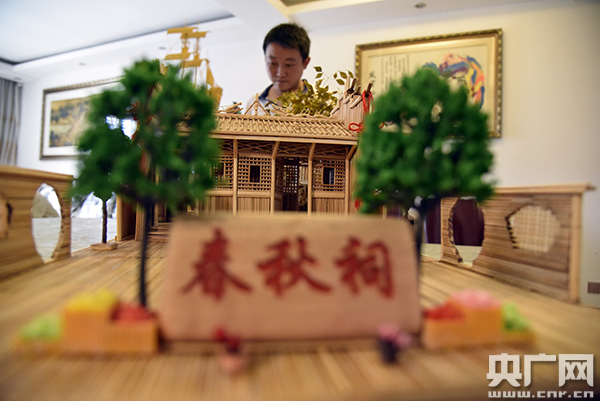 余航和他打造的竹簽版“春秋祠”
