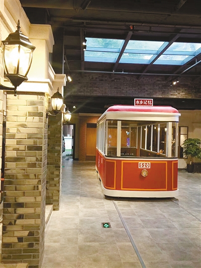 跨進(jìn)寬大的木門,仿佛穿越了時(shí)空,古磚巷道、沿街店鋪、復(fù)古郵筒映入眼簾,不遠(yuǎn)處的黃包車正等著客人。沿著鐵軌向前走,陽(yáng)光正慵懶地灑落在庭院里,一輛色彩絢麗的電車正沿著鐵軌向你駛來(lái)……讓人瞬間回到民國(guó)時(shí)代。記者看到,整個(gè)影院如同一個(gè)電影攝影棚,場(chǎng)景感十足,現(xiàn)場(chǎng)還布置了一個(gè)小型的電影博物館,展示不同年代的電影拍攝和播放技術(shù)設(shè)備。