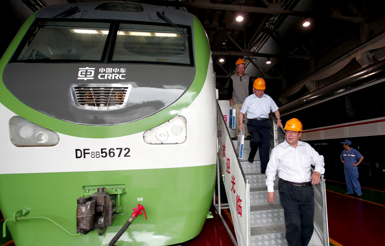 專家組觀摩裝用NY16V280雙燃料發(fā)動機(jī)的DF8B5672機(jī)車