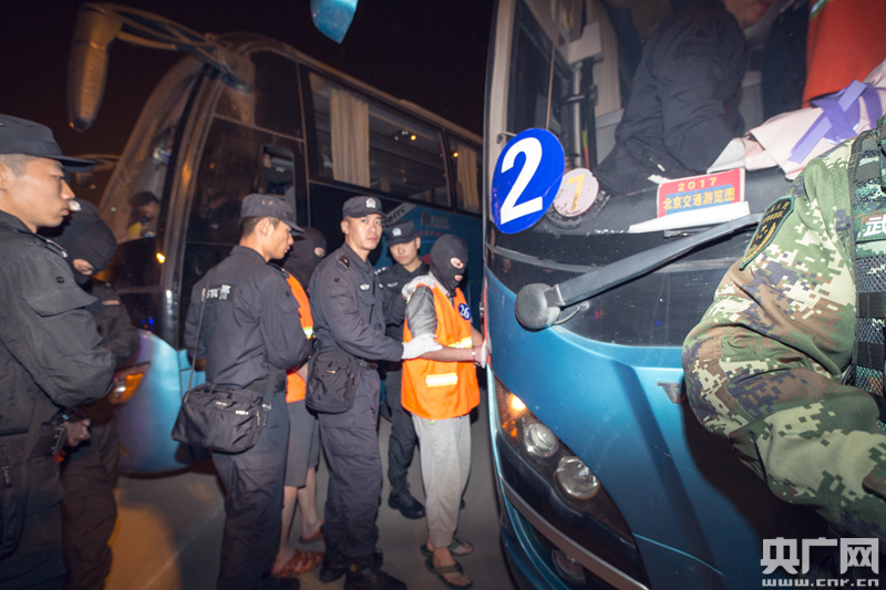 10月5日,工作組和柬警方在柬埔寨金邊、拜林、西哈努克港三地同時(shí)開(kāi)展集中抓捕行動(dòng),搗毀電信網(wǎng)絡(luò)詐騙犯罪窩點(diǎn)11處,抓獲中國(guó)籍犯罪嫌疑人74名,繳獲涉案銀行卡、電腦、手機(jī)等一大批贓物。圖為犯罪嫌疑人被押解下飛機(jī)。 -