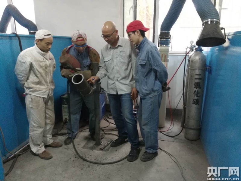 王啟峰教練指導(dǎo)趙振亮提高焊接技術(shù)