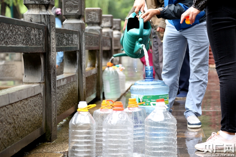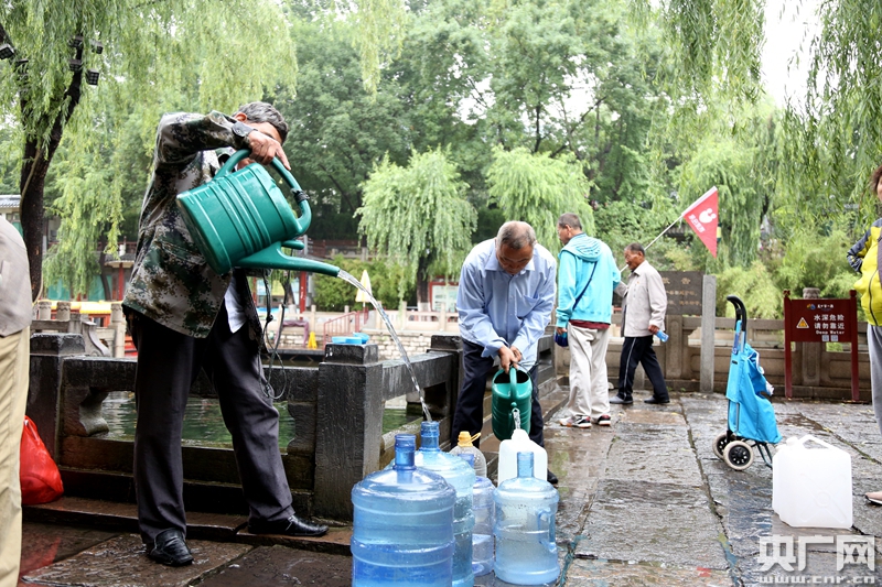 降水加快了護(hù)城河內(nèi)泉水的流動(dòng)速度,所以今天的白石泉也比記者上次來時(shí)更加清澈,這里也同樣聚集了不少前來取水的市民。 -