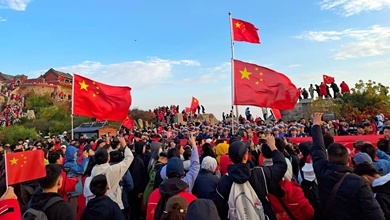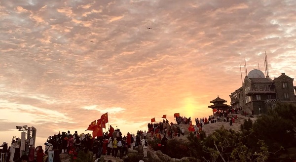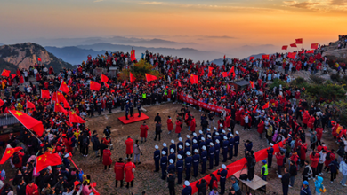 山東:萬人見證泰山之巔“中國紅”