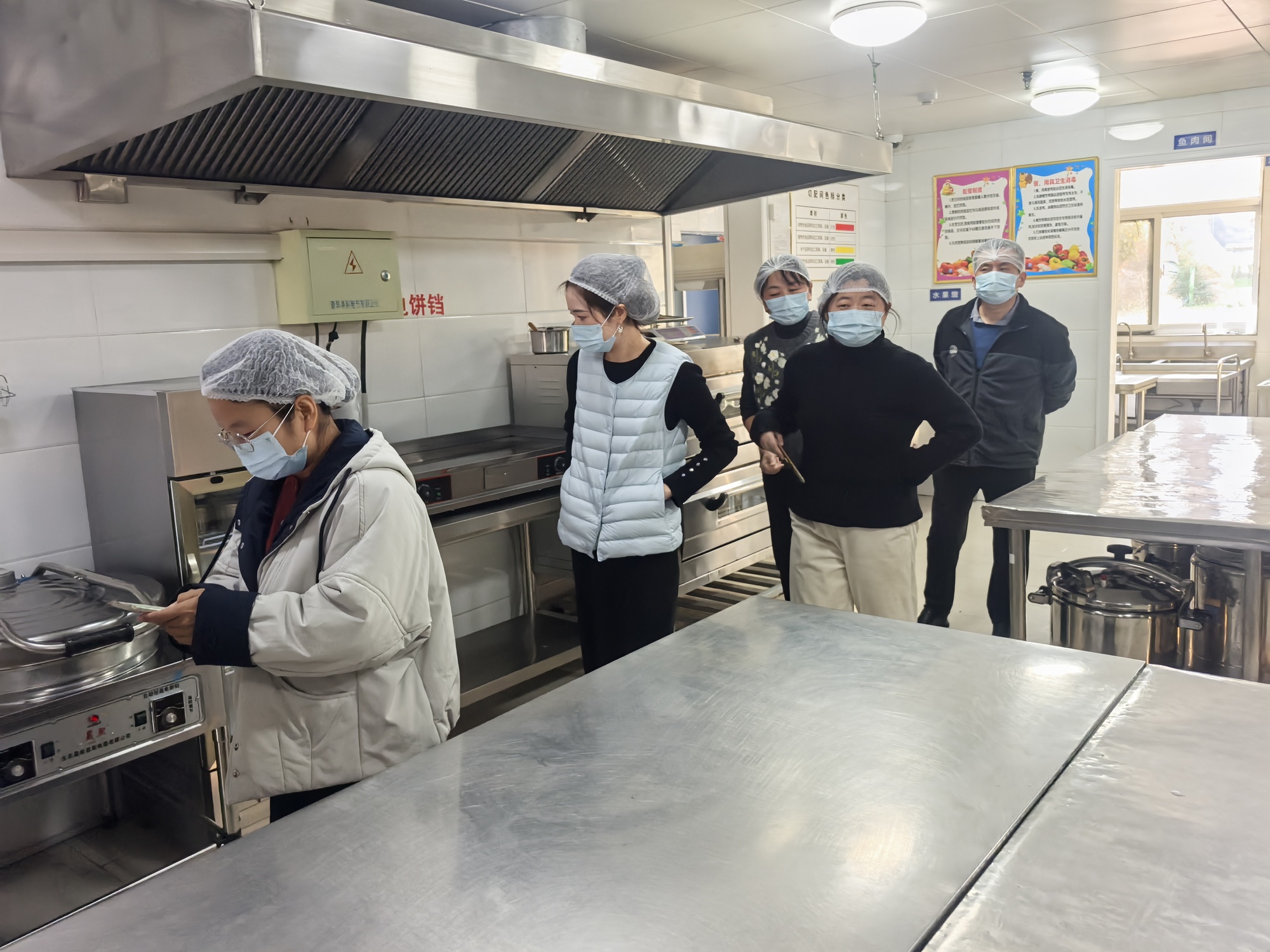 伙委會檢查幼兒園食堂衛(wèi)生情況