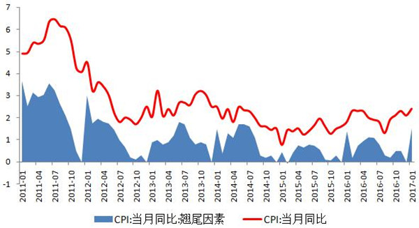 圖 CPI翹尾因素及同比走勢(shì)