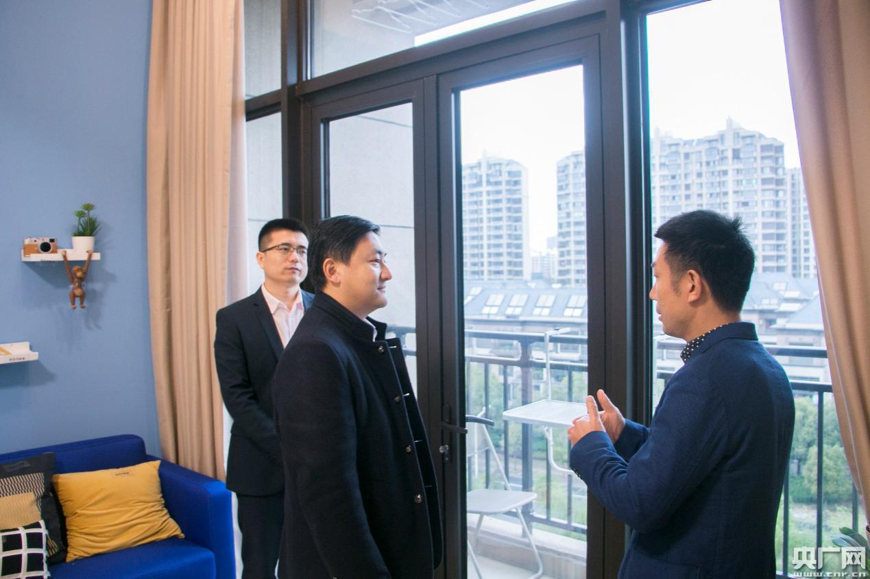 調(diào)研團通過參觀南翔店樣板房,深入了解了“上海青年守信安居計劃”的實施情況。近七十平方米的寬大居住空間、窗外望去碧水鮮花風(fēng)光旖旎、獨有的藝術(shù)室內(nèi)落地窗墻面設(shè)計、品牌家裝確!傲喟胱 薄旅篮糜謱嵒菀司拥钠焚|(zhì)生活方式,讓大家贊不絕口。