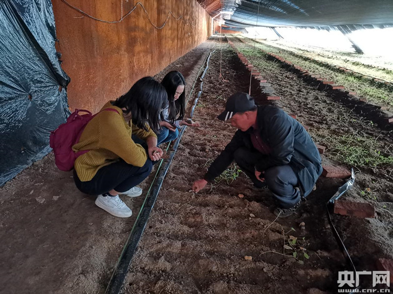 劉海生在和碧桂園集團產業(yè)扶貧的調研小組交流羊肚菌種植(央廣網發(fā) 碧桂園提供)