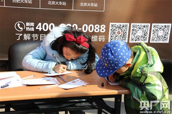 小朋友在給親人寫(xiě)祝?ㄆㄑ霃V網(wǎng)記者唐奇云 攝)