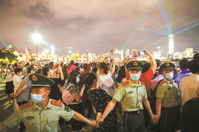 為保障安全組成的“人墻”、雨中維持秩序的民警背影……這些情景,和閃耀浦江兩岸的璀璨燈光一起,成為市民游客照片中的主角、直播中的鏡頭,展現(xiàn)出上海這座大都市的別樣光彩。