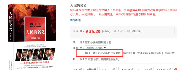 在京東上,紙質(zhì)書《人民的名義》目前需要預定