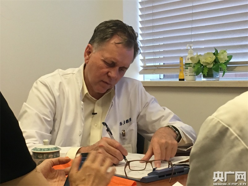 盡管馬歇爾來(lái)上海之前得了重感冒,再加上長(zhǎng)途飛行確實(shí)比較疲憊,但他仍然準(zhǔn)時(shí)開診。通過院內(nèi)一名外語(yǔ)出色且有留學(xué)經(jīng)歷的胃腸內(nèi)科醫(yī)生的翻譯,他與每一位患者細(xì)細(xì)交談,了解他們的病情,逐一給出了個(gè)體化精準(zhǔn)治療的建議。參照中國(guó)醫(yī)生的看診時(shí)間,東方醫(yī)院前期將每位患者的門診咨詢時(shí)間預(yù)定在半小時(shí)左右,但實(shí)際上,他對(duì)每位患者的咨詢時(shí)間都在1小時(shí)甚至更多。馬歇爾不僅看病是“超長(zhǎng)待機(jī)”,病歷也寫得極其細(xì)致、整潔,詳細(xì)程度堪比住院醫(yī)師。這樣的病歷,被患者當(dāng)作“紀(jì)念品”小心保留。