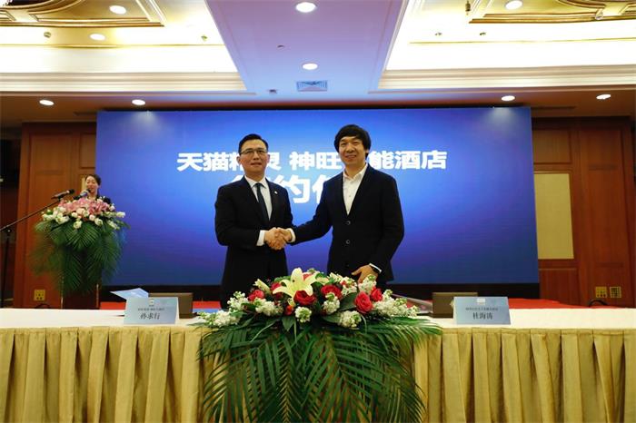 圖注:雙方簽署智能客房合作協(xié)議(神旺酒店管理集團負責人孫求行與阿里巴巴人工智能實驗室產(chǎn)品負責人杜海濤)