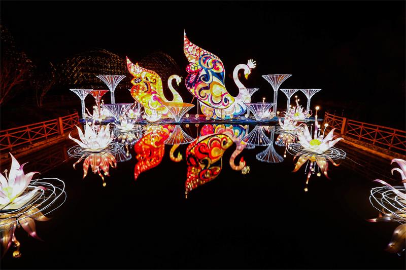 另外,今年跨年燈會(huì)由100余名自貢“非遺”傳人歷時(shí)一個(gè)月精心打造,50組大型奇幻燈組,布置了“炫彩時(shí)光”、“海上鳴樂(lè)”、“美麗中國(guó)”、“奇幻世界”4大主題彩燈展區(qū)。春節(jié)期間,上海歡樂(lè)谷在傳統(tǒng)自貢彩燈的基礎(chǔ)上,新增斑馬、犀牛、長(zhǎng)頸鹿、火烈鳥等數(shù)十組藝術(shù)光雕,并對(duì)園區(qū)環(huán)境燈光進(jìn)行升級(jí),推出猜燈謎活動(dòng),重拾兒時(shí)的簡(jiǎn)單樂(lè)趣,為廣大游客打造一個(gè)繽紛璀璨、流光溢彩的新春、元宵佳節(jié)。