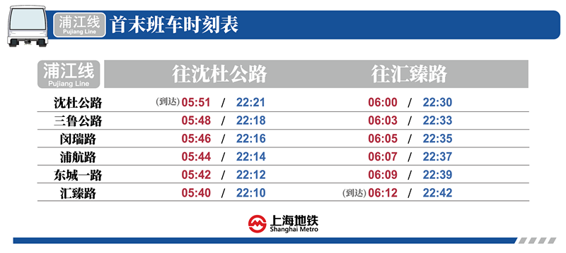 需要提醒乘客注意的是:8號線市光路往沈杜公路站末班車到達時間為23:35,浦江線沈杜公路站往匯臻路站末班車發(fā)車時間為22:30。提醒夜間在沈杜公路站換乘浦江線的乘客,注意末班車換乘銜接,夜間22:30后,需換乘地面公交。