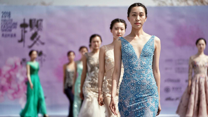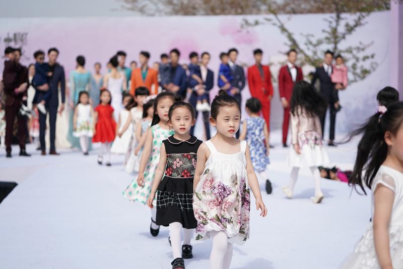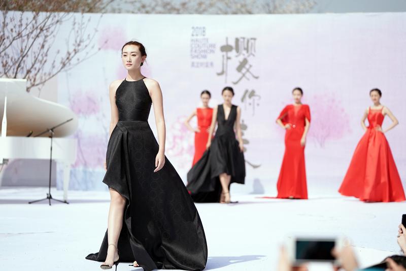 在昆曲聲中,櫻花秀場的觀眾越聚越多,賞櫻的人群都被這極富傳統(tǒng)韻味的表演吸引了過來。不過,緊接著的高定時裝秀卻充滿了時尚意味,展現(xiàn)出櫻花林的“現(xiàn)代”一面。純白的蕾絲連衣裙、做工精良男士西裝、立體雕花的落地晚禮服與色彩繽紛的童裝一一亮相,百余套高定服裝展示了手作時裝的翩然魅力。有趣的是,在小模特們穿著童裝走秀的同時,青年芭蕾舞演員梁文好也登臺了,芭蕾演出服上的櫻花呼應(yīng)了時裝秀的主題,優(yōu)雅的芭蕾舞姿更令人難忘。