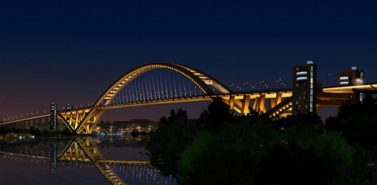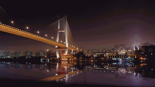 橋兩側(cè)的燈光,可以按照節(jié)奏變化。橋腹部采用燈光打亮,照亮江面,形成倒影。節(jié)假日期間,楊浦大橋的橋側(cè)和橋腹采用單色燈,襯托出大橋的暗紅色,凸顯工業(yè)印象。