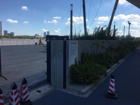 記者在現(xiàn)場看到盧浦大橋橋下的景觀平臺暫時封閉,但慢行道依然暢通