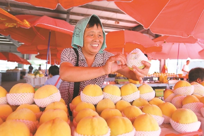 黃桃的銷售難點(diǎn)與其自身特性有直接關(guān)系。記者了解到,奉賢黃桃成熟期集中在每年8月中旬。黃桃采摘后,如果自然存放,2至3天就開始變形,10天左右開始變質(zhì);如果冷藏存放,會(huì)明顯影響果品水分,口感大打折扣。這意味著,留給桃農(nóng)的銷售窗口期每年只有不足1個(gè)月。短時(shí)間內(nèi)要將優(yōu)質(zhì)果品變現(xiàn),難度不小。