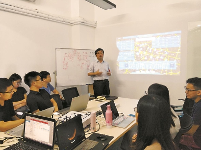 楊曉光為學(xué)生講解系統(tǒng)情況。 彭德倩 攝