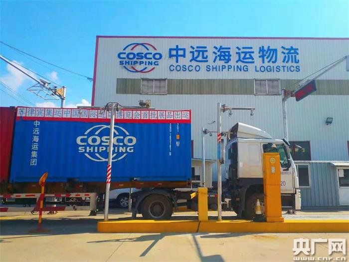 中國進口博覽會首個進口分撥集裝箱順利運抵吳淞海關轄區(qū)內海關監(jiān)管作業(yè)場所上遠集裝箱監(jiān)管站。(央廣網發(fā) 上海海關供圖)