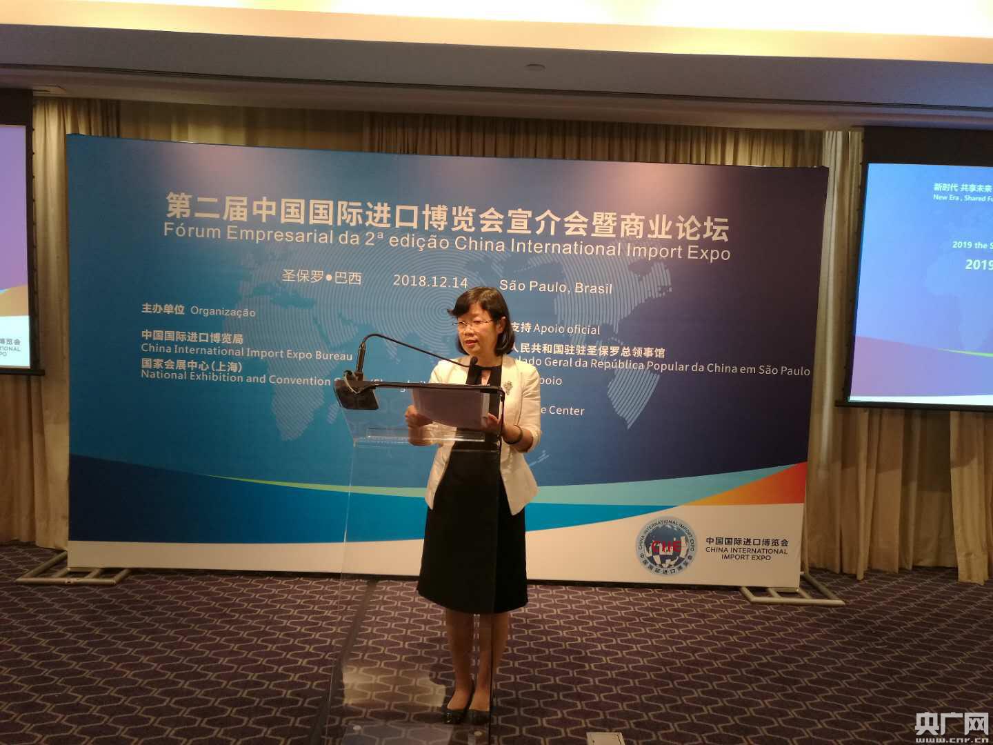 中國駐圣保羅總領(lǐng)事陳佩潔致詞 央廣網(wǎng)發(fā) 進(jìn)口博覽局提供,下同