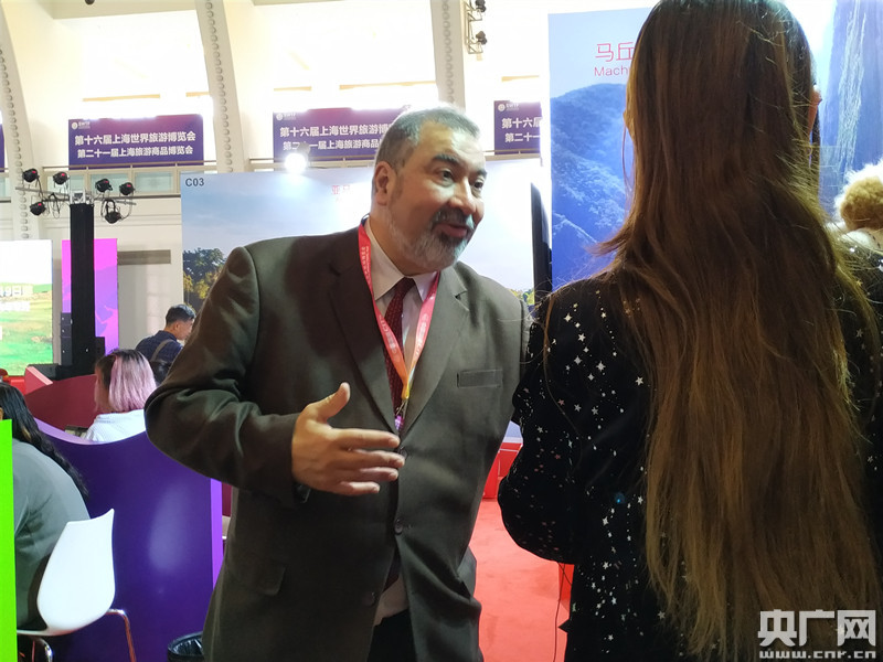 秘魯駐上海經(jīng)濟(jì)商務(wù)處商務(wù)參贊弗拉迪米爾·戈切哈介紹秘魯旅游項(xiàng)目 央廣網(wǎng)記者林馥榆 攝