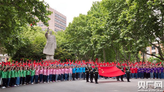 同濟大學校史館前,馬克思主義學院思政理論課教師與學院學生、同濟大學學生習近平新時代中國特色社會主義思想學習研究會學子一道,深情放歌同濟大學原創(chuàng)歌曲《青春中國》:“多少次夢中訴說,你是我豪邁的祖國,世代的勞作,汗水澆灌了秧禾……”火紅的T恤,激蕩著熾熱的愛國之情。馬克思主義學院特聘教授陳大文說:“愛國是一種深沉的情懷,表達這種情懷需要儀式感。今天我們與學生共同唱歌抒懷,讓此時此刻顯得格外不同,它能喚醒我們的真情,使我們感到特別莊嚴和神圣。我相信,它能凝聚起磅礴的愛國力量。”