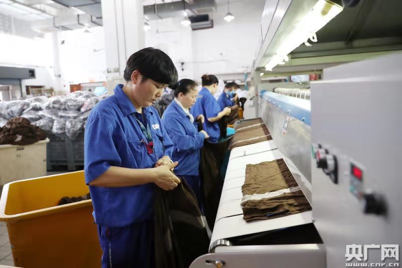 這里就是位于虹橋機(jī)場的東航地面服務(wù)部生產(chǎn)供應(yīng)車間,相較于室外的烈日當(dāng)空,室內(nèi)更是熱火朝天。“這個車間有好幾個組(工作),比如洗滌組、熨燙組、搬運組、整理組等等!睎|航地服部虹橋生產(chǎn)供應(yīng)部車間主任李士芬告訴記者,洗滌組負(fù)責(zé)將飛機(jī)上的毛毯、枕套、被套等洗滌烘干,熨燙組負(fù)責(zé)對毛毯進(jìn)行熨燙、裝袋、封口、打包等等工作。