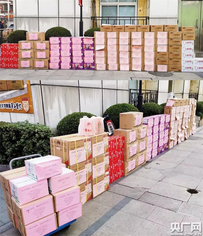 經(jīng)過所有人通宵達(dá)旦的努力,今天(9日)一大早,1000副醫(yī)用防護(hù)鏡、200條電熱毯、800雙羊毛襪、846片女性考拉褲及衛(wèi)生巾、7200塊藥皂、630盒VC泡騰片、672瓶漱口水和口噴劑、以及牛奶、巧克力、方便面、八寶粥等各類方便食品共計(jì)15種265箱10958件物資運(yùn)送至華山醫(yī)院集合地。與醫(yī)療隊(duì)隊(duì)員一起出發(fā)前往武漢。