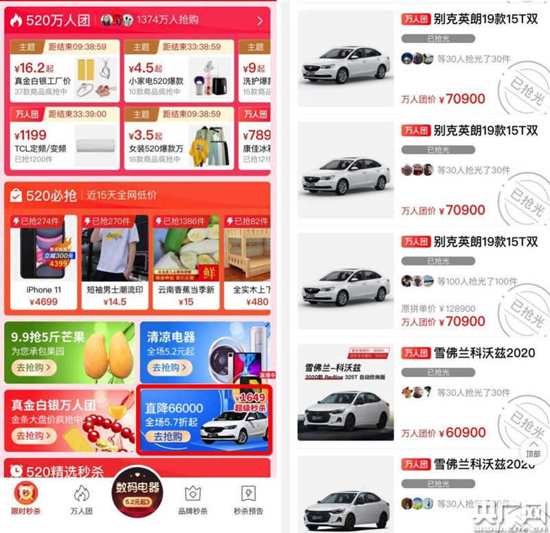 消費者可以在拼多多首頁的“限時秒殺”頻道中進(jìn)入“汽車嗨購節(jié)”頁面參與搶購,前期上線的部分車型已售罄,平臺正在進(jìn)行補貨。(央廣網(wǎng)發(fā) 拼多多提供)