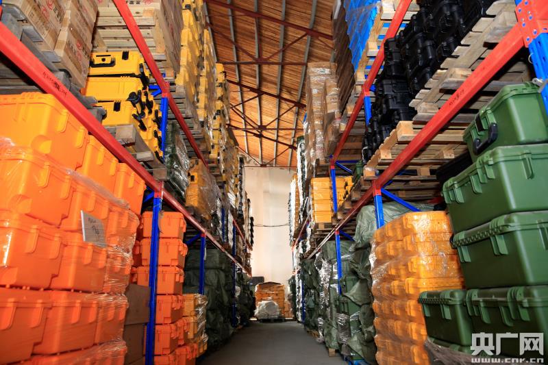 企業(yè)倉庫壘滿各類防護(hù)箱(央廣網(wǎng)發(fā) 楊亮 攝)