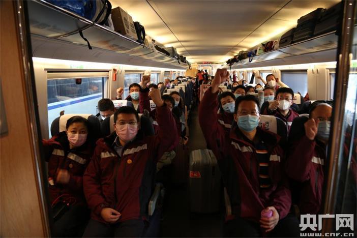 2020年2月4日華山醫(yī)院國(guó)家緊急醫(yī)學(xué)救援隊(duì)出征前往武漢的高鐵上