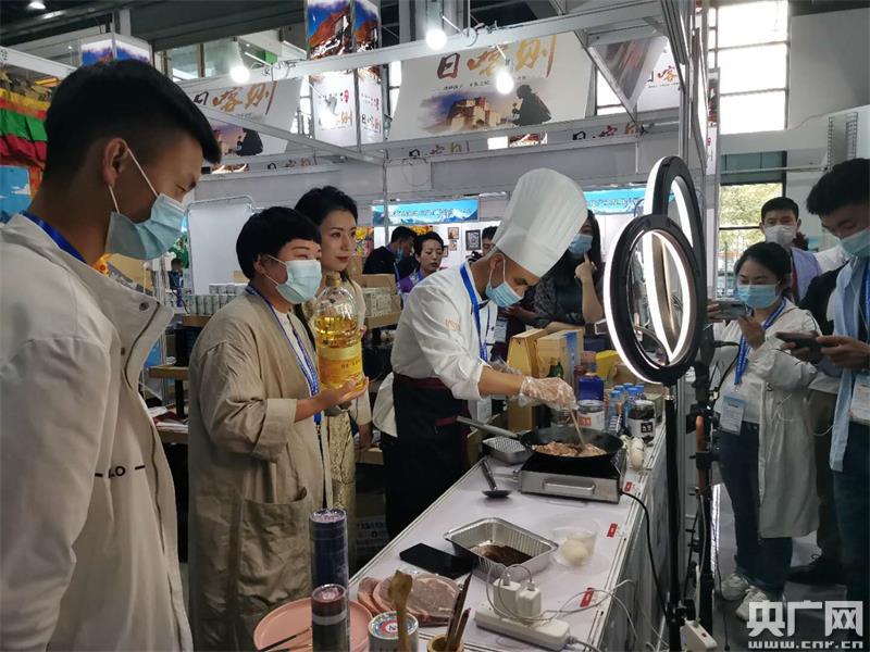 除了直播專區(qū),今年的展銷會還增設(shè)了餐飲體驗(yàn)區(qū),將來自對口幫扶地區(qū)的特色食材通過現(xiàn)場制作的形式與觀眾進(jìn)行互動,并通過餓了么、口碑、淘寶等直播平臺,對外宣傳展會期間提供的食材特色。