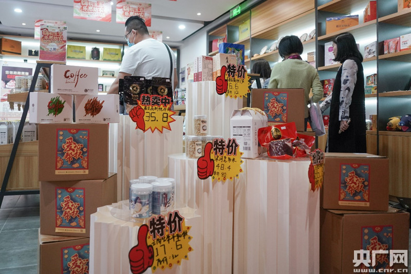 “五五購物節(jié)”期間,拼多多將為上海以及全國消費者持續(xù)發(fā)放購物福利。在靜安區(qū)一家“百縣百品”直營店,上海市民正在熱情選購特價農(nóng)特產(chǎn)品。(央廣網(wǎng)發(fā) 李林攝)