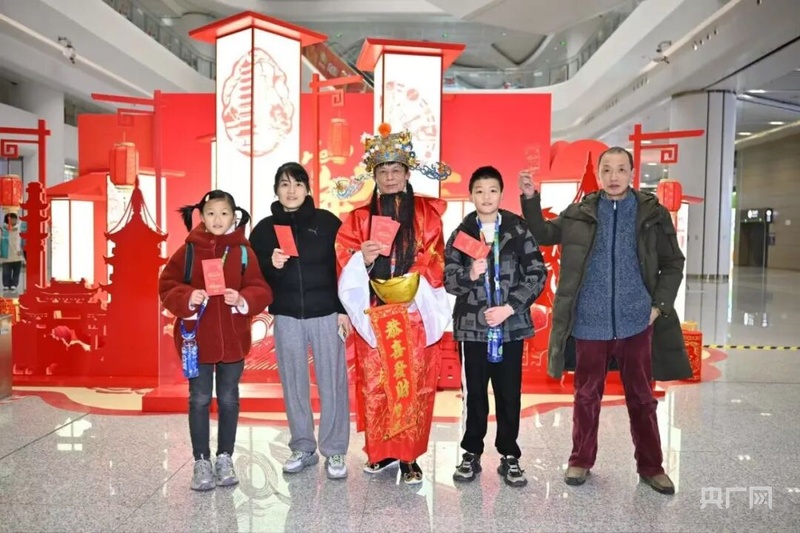 上海松江站旅客領(lǐng)取“財(cái)神”發(fā)放的“馬年紅包”(央廣網(wǎng)發(fā) 受訪者供圖)