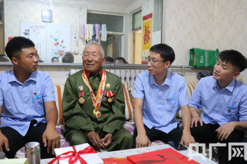 黨員志愿者們先后走進老黨員劉君重和喬德秀家中,同他們親切交談,詳細詢問他們的健康和生活狀況,傾聽他們當前生活上的困難和問題,叮囑他們多保重身體,為他們送上了粽子、米、面、油等慰問品和黨史書籍。老黨員們對志愿者的到來表示十分感謝,開心激動之余追憶起當年的崢嶸歲月,為大家講述當年的革命故事,對志愿者們提出了殷切期望。
