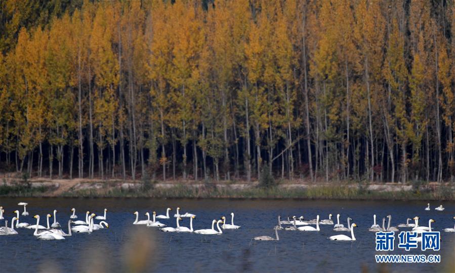 11月2日,大天鵝在山西平陸黃河濕地水面上游弋。 近日,千余只大天鵝陸續(xù)飛抵山西省平陸縣黃河濕地,準(zhǔn)備在這里棲息越冬,黃河濕地變成了美麗的“天鵝湖”。 近年來(lái),山西平陸黃河濕地生態(tài)環(huán)境不斷改善,每年到此越冬的大天鵝數(shù)量在1萬(wàn)只左右。新華社發(fā)(薛俊 攝)