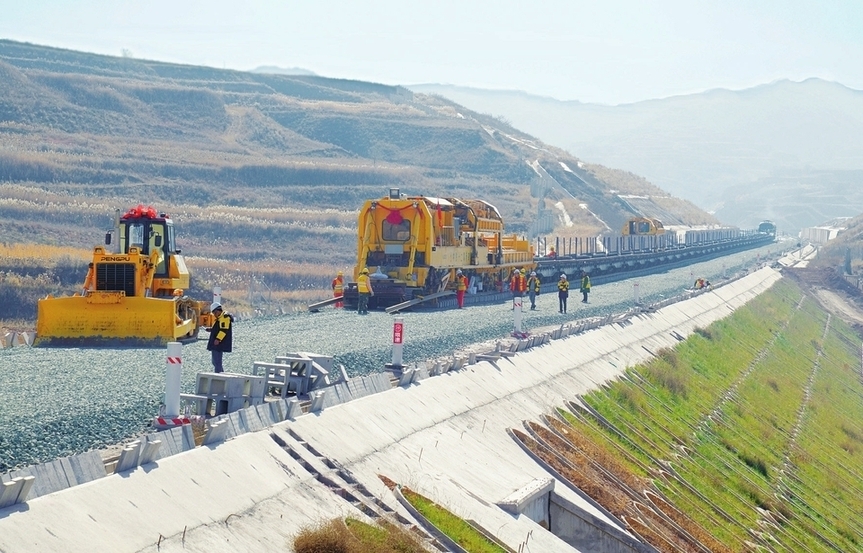 11月15日,在太焦高鐵武鄉(xiāng)至榆社區(qū)間內(nèi),鋪軌機(jī)正在進(jìn)行鋪軌作業(yè)。太焦鐵路是我國規(guī)劃建設(shè)的“八縱八橫”高速鐵路網(wǎng)的重要組成部分,是山西與河南等中東部地區(qū)客運(yùn)交流的快捷通道,預(yù)計2020年12月建成通車。目前,太焦高鐵山西段路基、隧道和橋梁等各項工程正在有序推進(jìn)中。記者 王彥軍攝