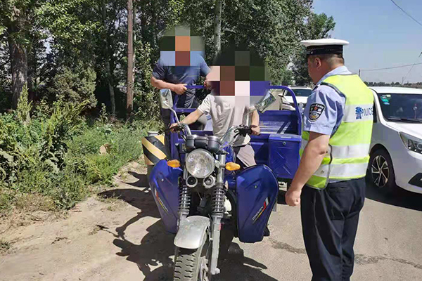 經(jīng)核査,該車后斗內(nèi)乘坐1人,車上無任何安全防護(hù)措施,且駕乘人員均未佩戴安全頭盔,存在嚴(yán)重交通安全隱患。民警當(dāng)即責(zé)令車上人員下車,并結(jié)合轄區(qū)電動(dòng)三輪車典型案例,對(duì)三輪摩托車駕駛?cè)送跄澈统俗诉M(jìn)行了批評(píng)教育,向他們講解了三輪車載人的危害性和嚴(yán)重后果,要求他們要自覺遵守交通法律法規(guī),提高自我防護(hù)意識(shí),拒絕違法行為,安全文明出行,并對(duì)王某違法載人和不按規(guī)定佩戴安全頭盔的行為依法給予處罰。