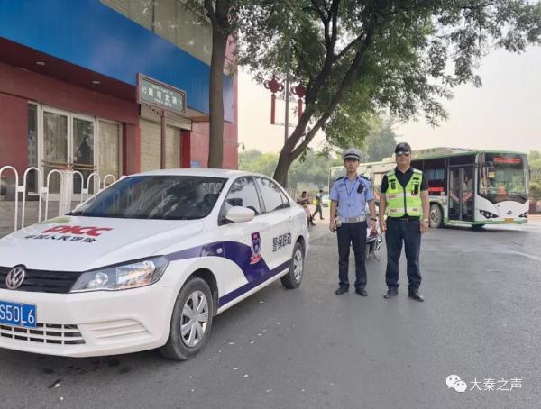 駐點(diǎn)崗的民警及“警保隊(duì)員”(圖片來(lái)自交警碑林大隊(duì))