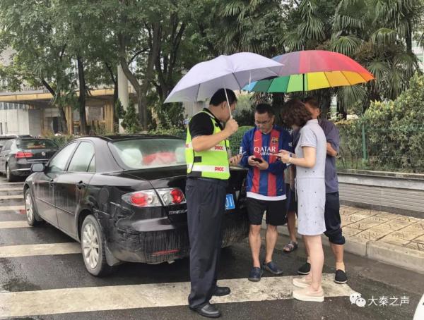 “警保人員”處理事故(圖片來(lái)自交警碑林大隊(duì))