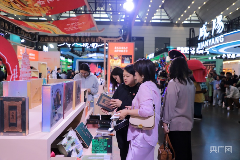 市民游客正在西安展位前駐足了解相關(guān)文創(chuàng)產(chǎn)品(央廣網(wǎng)記者 侯凱奇 攝)