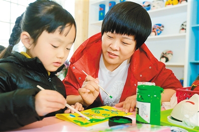 昨日,“愛(ài)心媽媽”孫婷收到許多幼兒園孩子們的鮮花。為了解決灃東新城石化大道周邊居民及這里一家大型物流食品交易中心入駐商戶(hù)和外來(lái)務(wù)工人員的孩子入托難的問(wèn)題,愛(ài)心企業(yè)家孫婷女士專(zhuān)門(mén)在物流園區(qū)內(nèi)擠出一塊地方建設(shè)了一所幼兒園,讓這里的孩子們都能順利入托。圖為“愛(ài)心媽媽”孫婷和小朋友一起繪畫(huà)。 首席記者 張宇明 攝