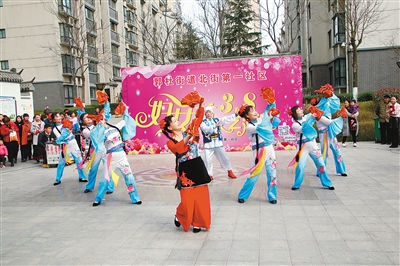 3月6日,長(zhǎng)安區(qū)郭杜街道北街第一社區(qū)舉辦慶“三八”文藝演出,在居民們熱情的掌聲中,婦女姐妹用歌聲舞蹈慶祝節(jié)日,展現(xiàn)女性自信。記者鄭燕茹 通訊員張永峰 攝