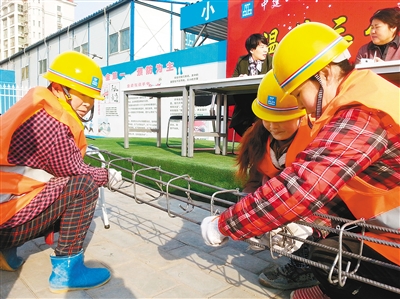 7日上午,曲江新區(qū)陜西大劇院項(xiàng)目工地,一場(chǎng)女工勞動(dòng)競(jìng)賽活動(dòng)吸引了不少人的目光。經(jīng)過(guò)半個(gè)小時(shí)緊張比賽,不少參賽的女工取得了好成績(jī),從工會(huì)領(lǐng)導(dǎo)手中接過(guò)獲獎(jiǎng)證書(shū)和三八節(jié)的禮物。 記者 謝偉 攝